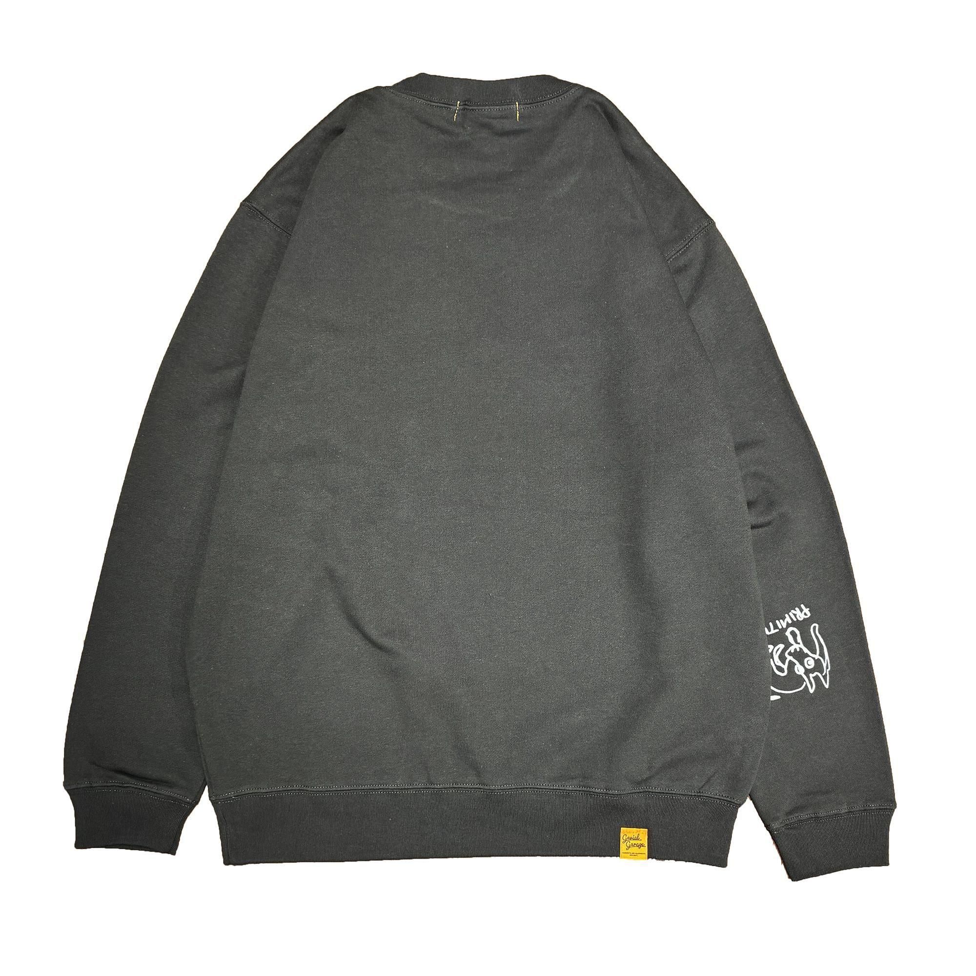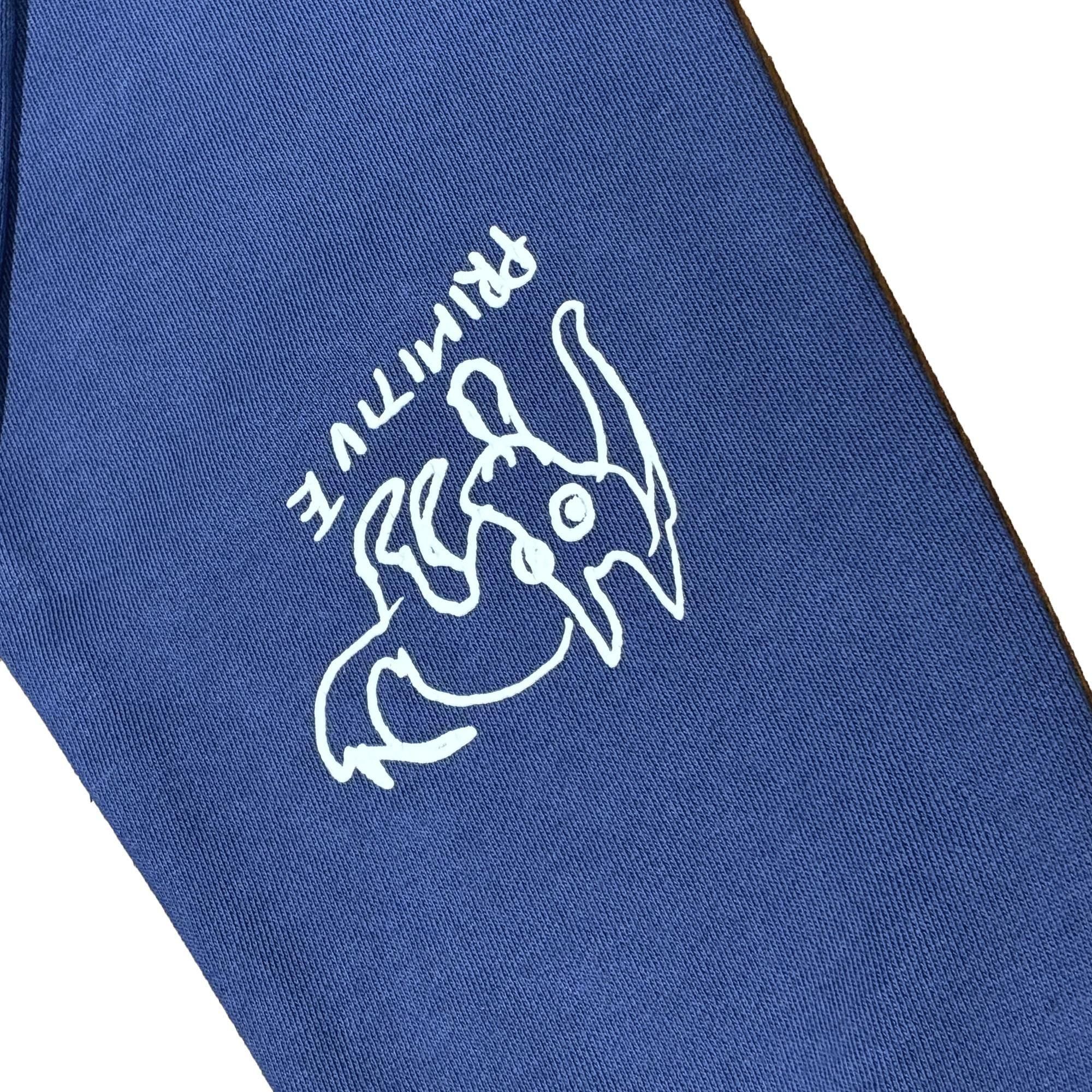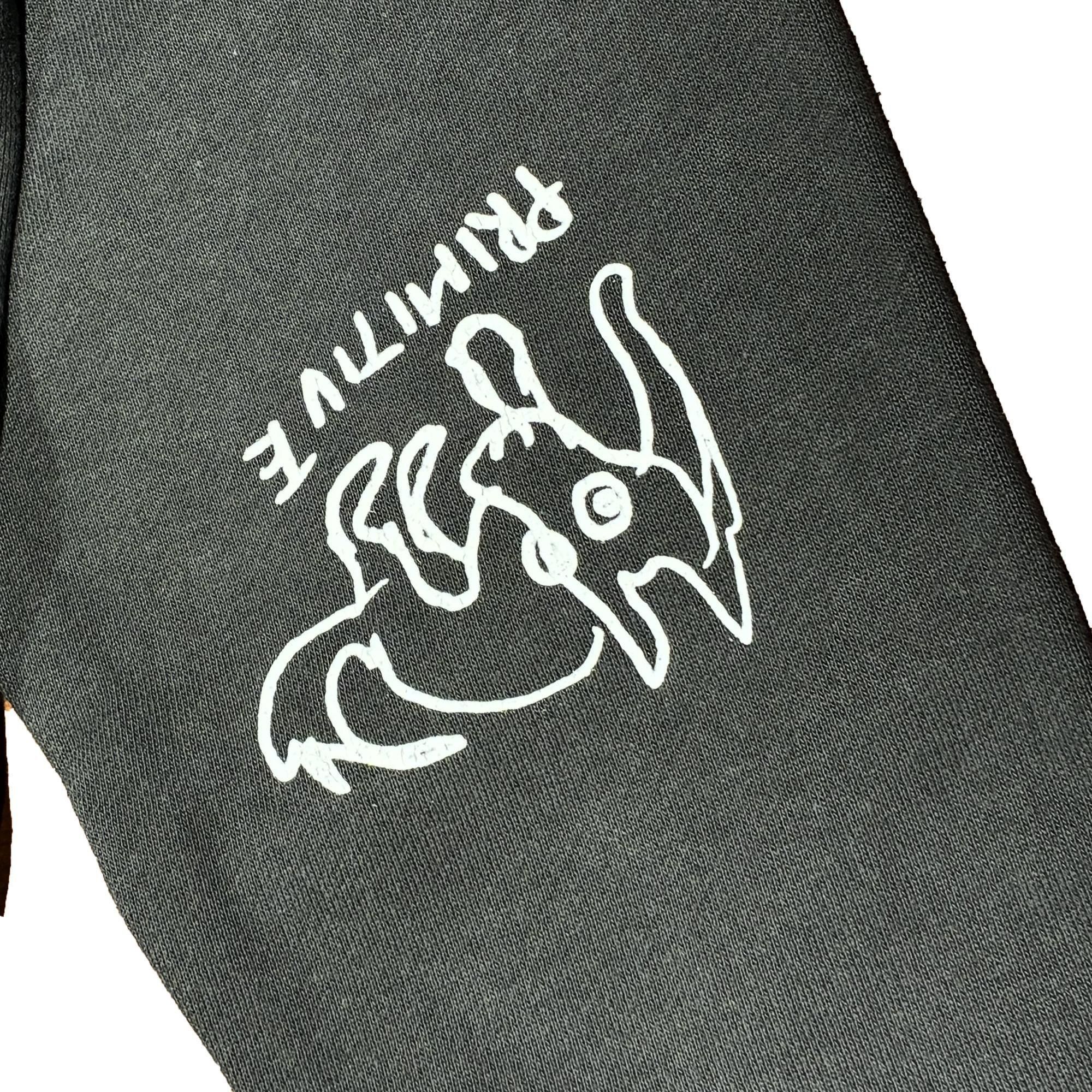 フロントには 中村達也手描きの"PRIMITIVE"と描かれた文字と、上目遣いの表情のワンコロがプリント。右袖にも小さなワンコロがプリントされて、肘をつくように上げた時に、フロントから腕に配置されて見えるところが◎