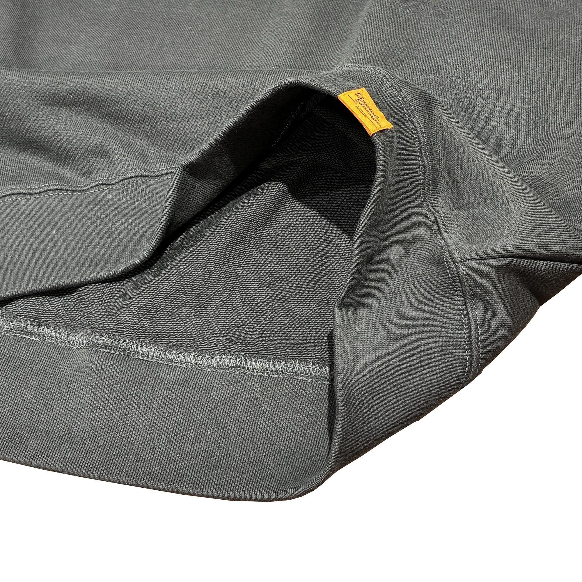 10oz、裏パイルのクルーネックスウェット。10ozの厚みが保温に走りすぎず、Tシャツほどのライト感もなくちょうど着やすいと人気のアイテム。