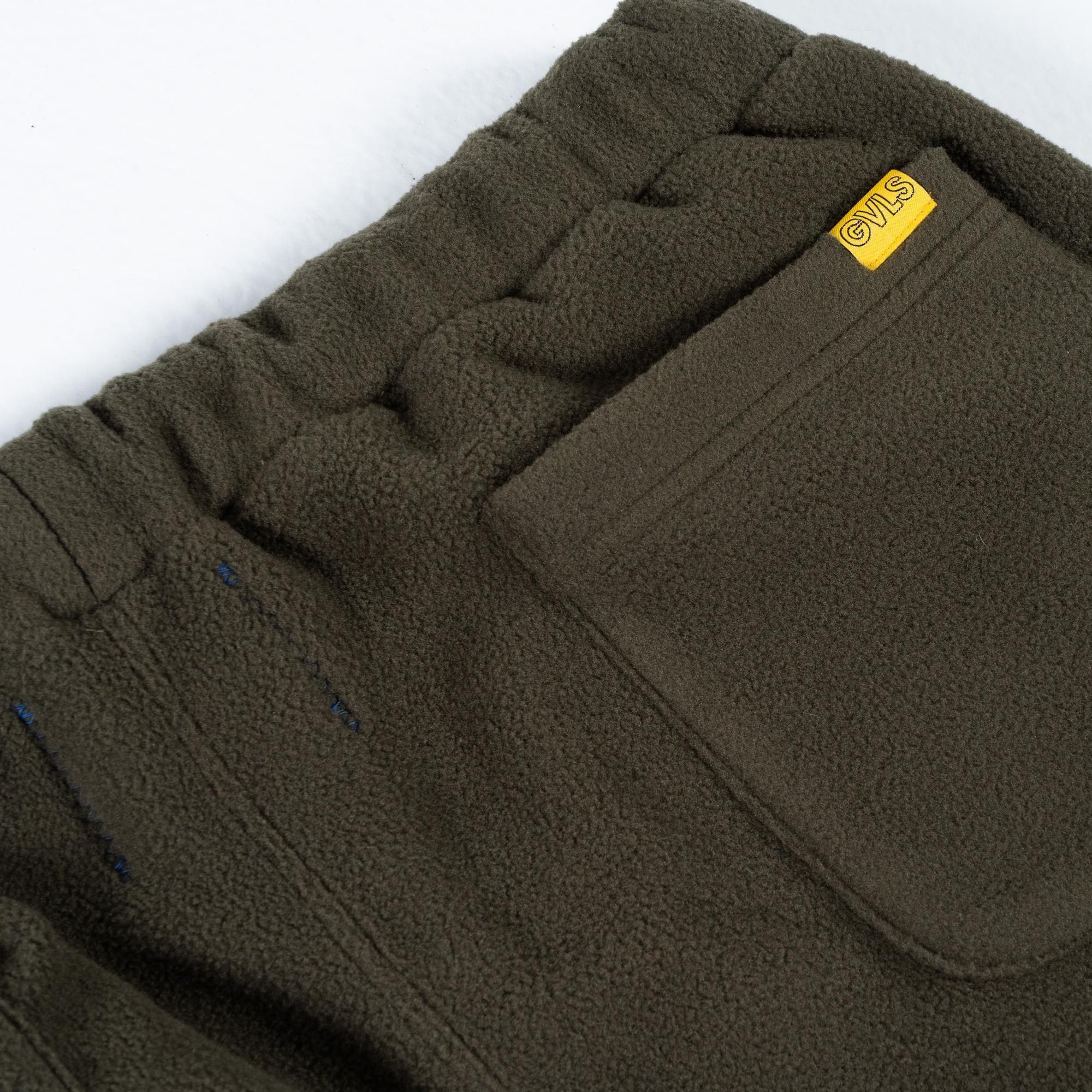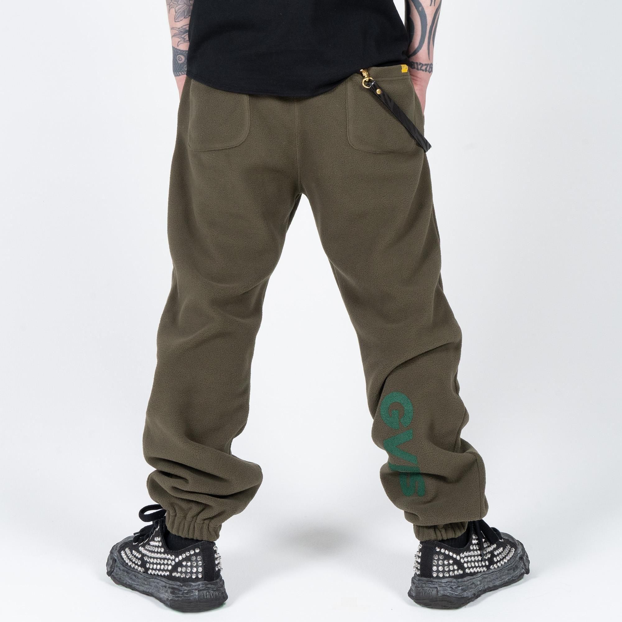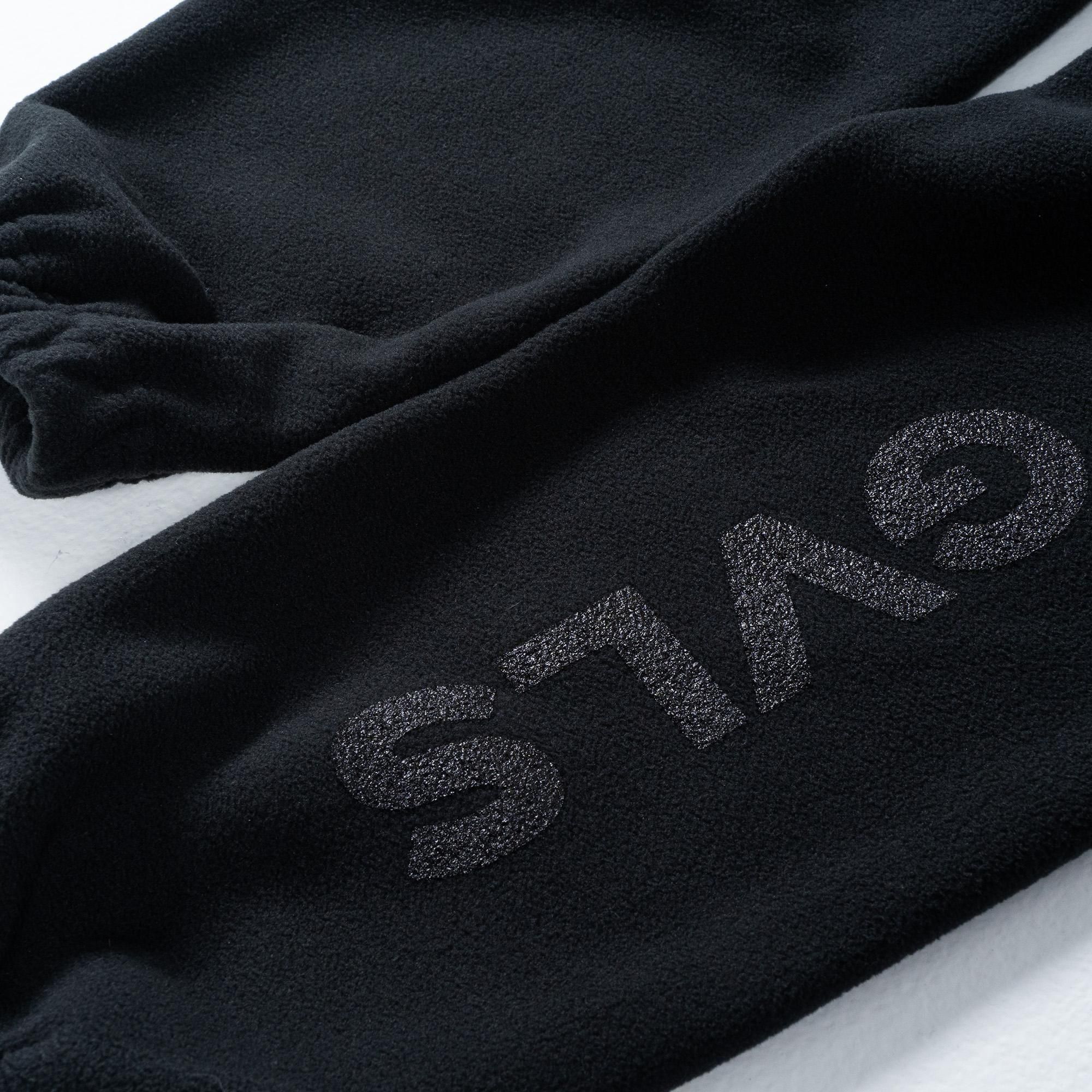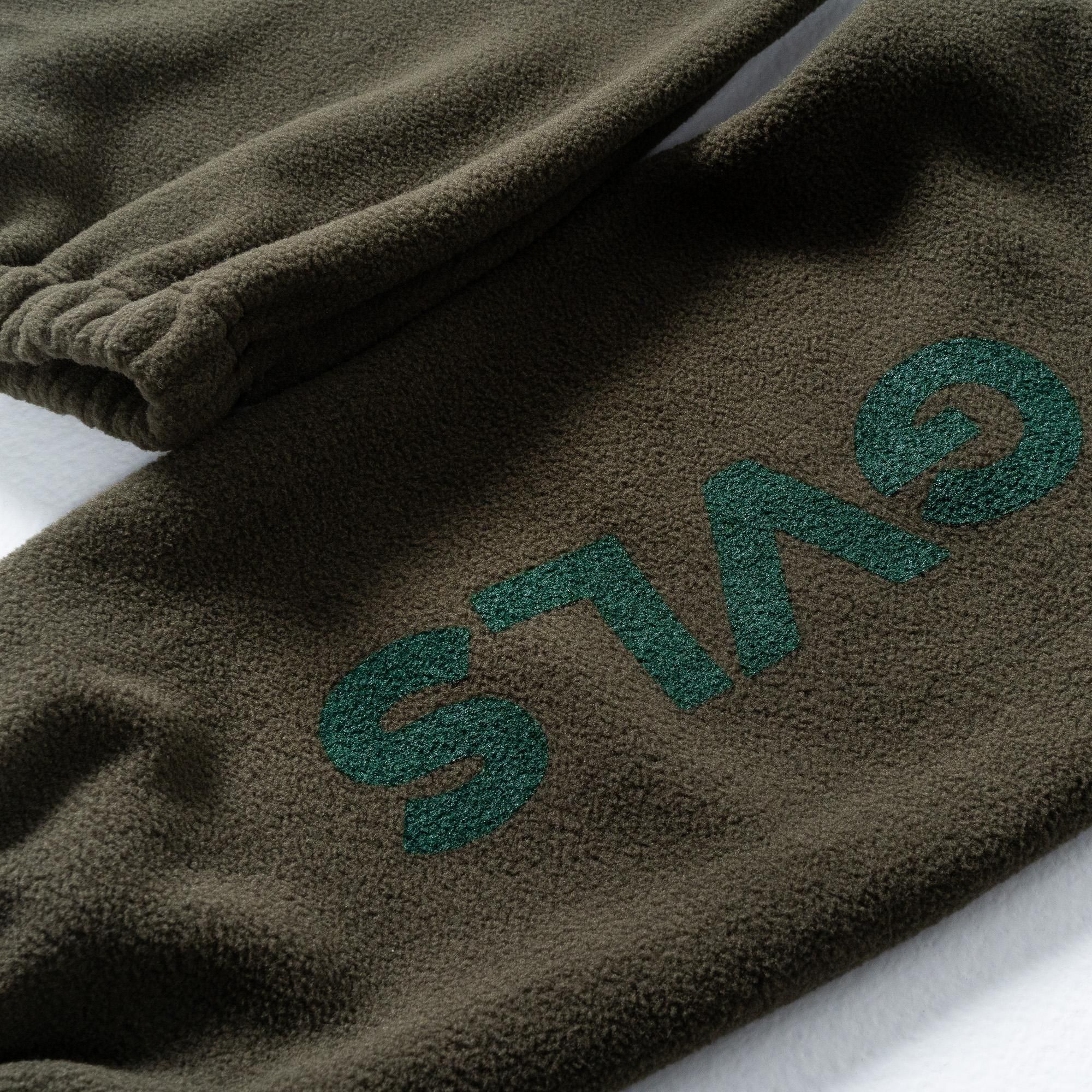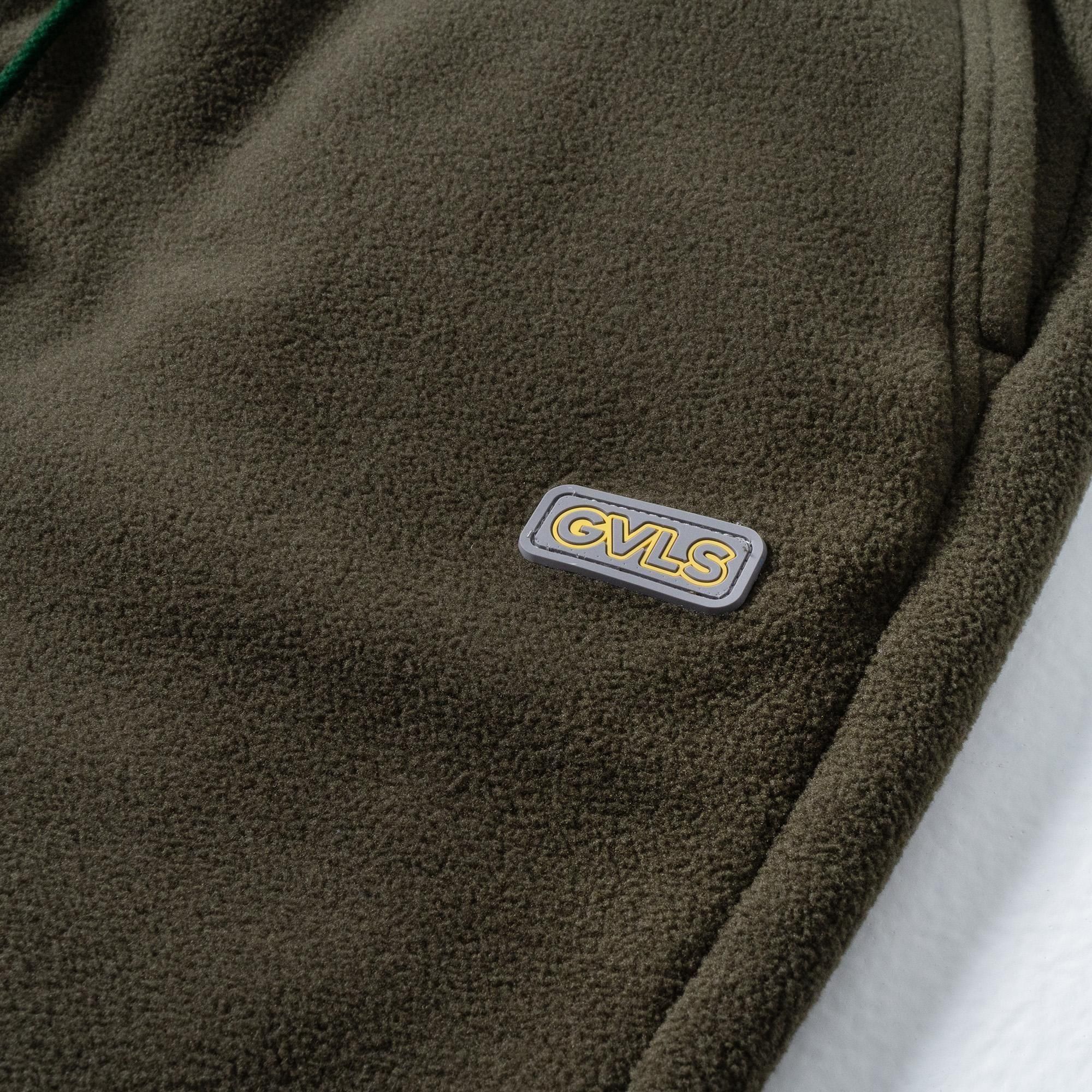 キメの細かな肌触りのフリースを使用。フロント左ポケット下にラバーのワンポイントネームタグが配置。右ふくらはぎのバックスタイルには生地同色のGVLSロゴがプリント。