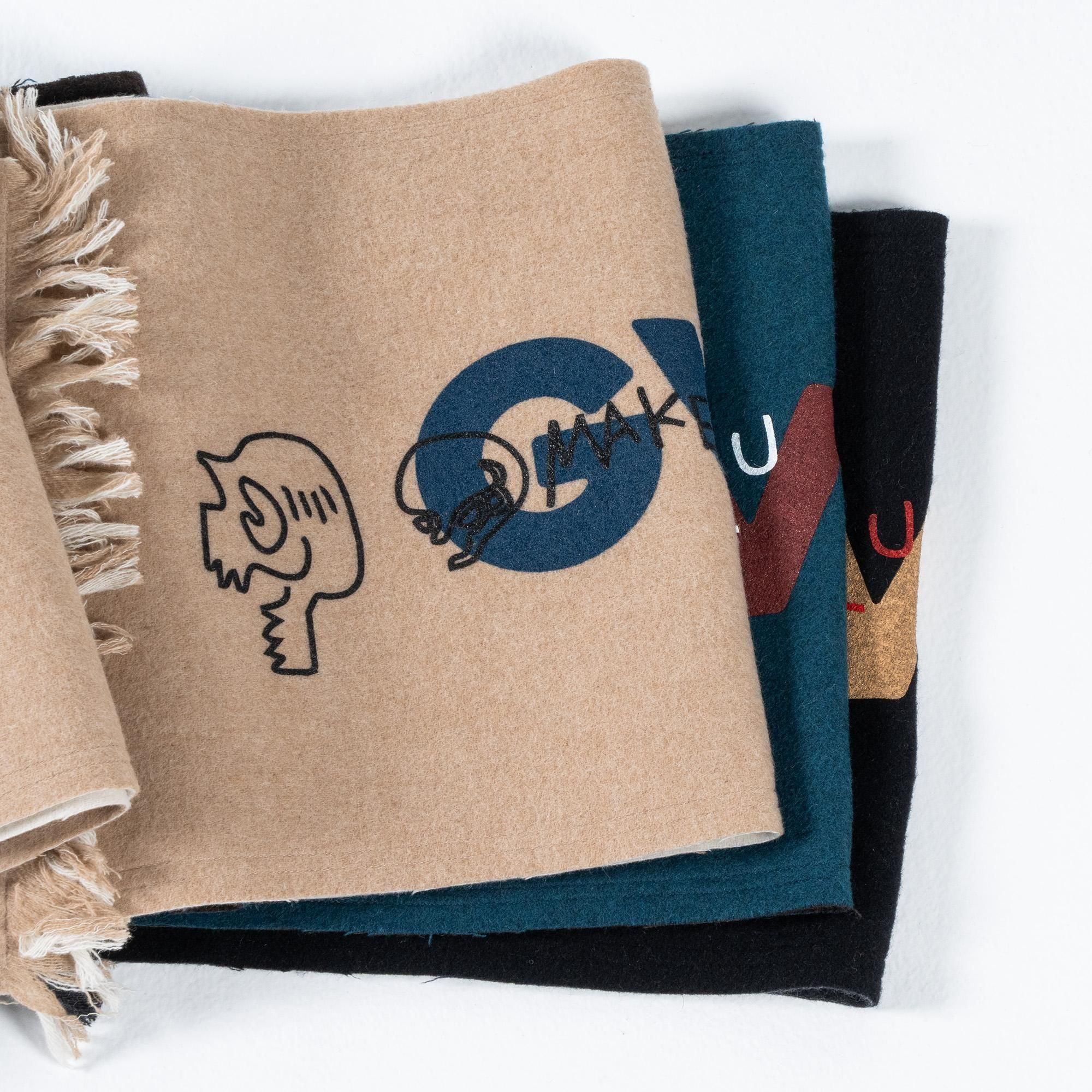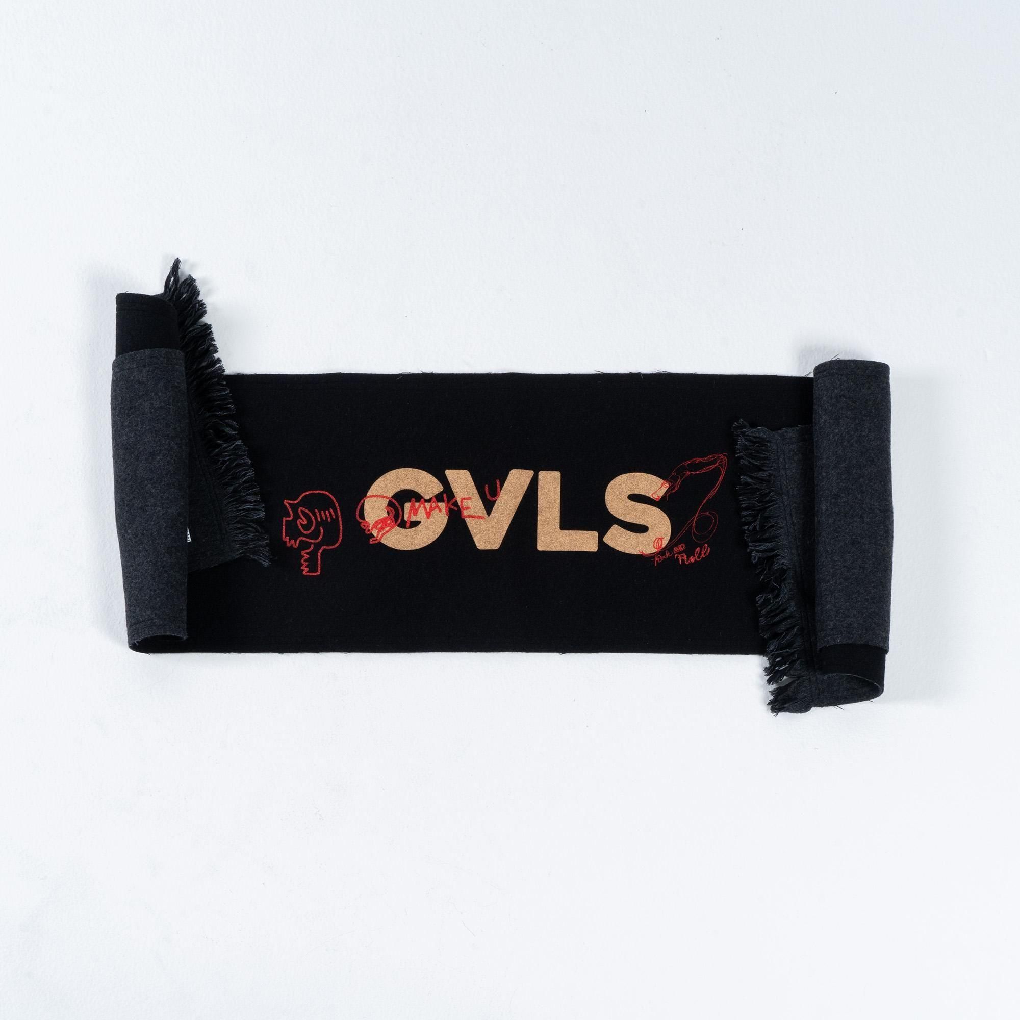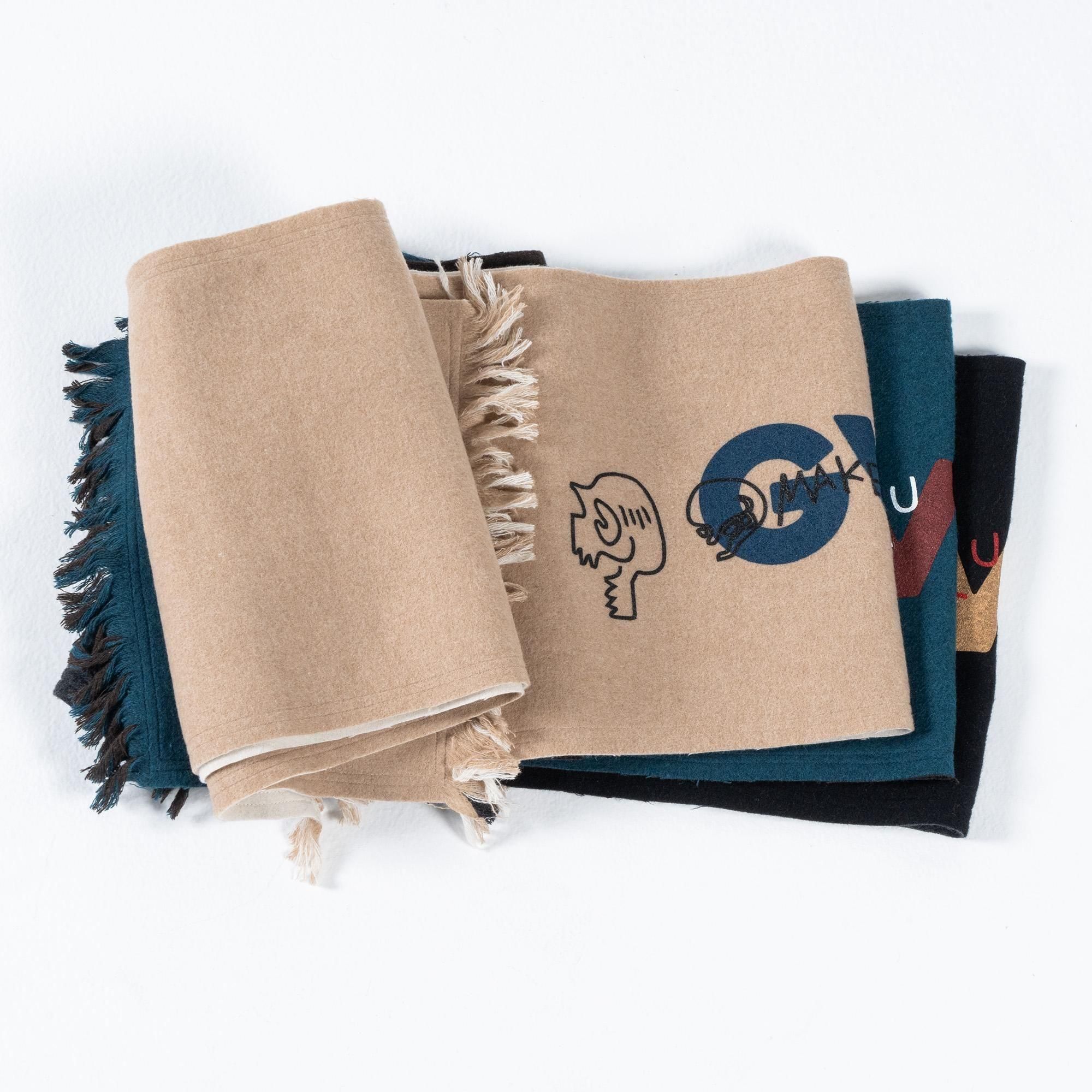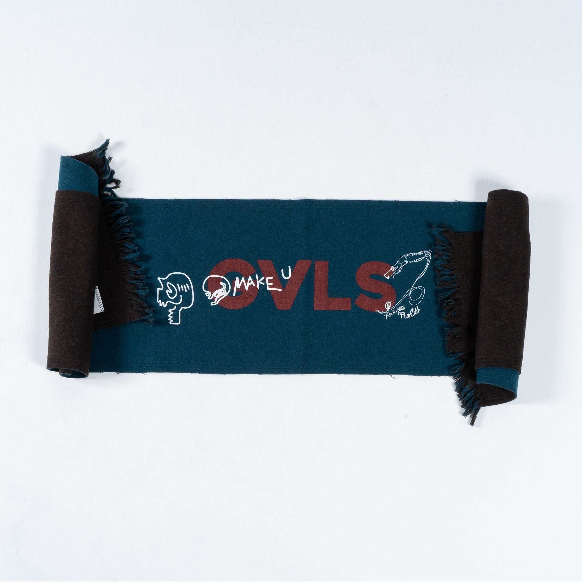 GVLS定番のロングマフラー。両面色違いの無地のボンディング加工になっており両端は短めのフリンジ仕様に。