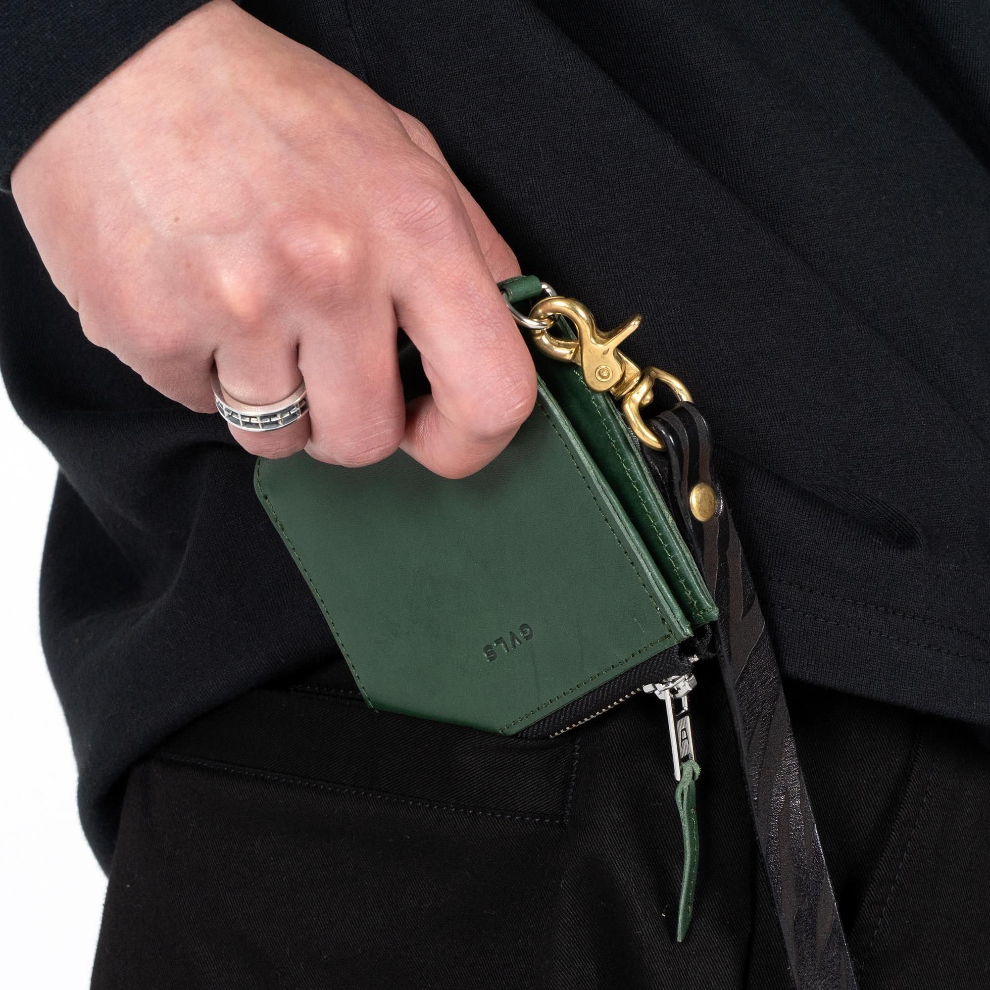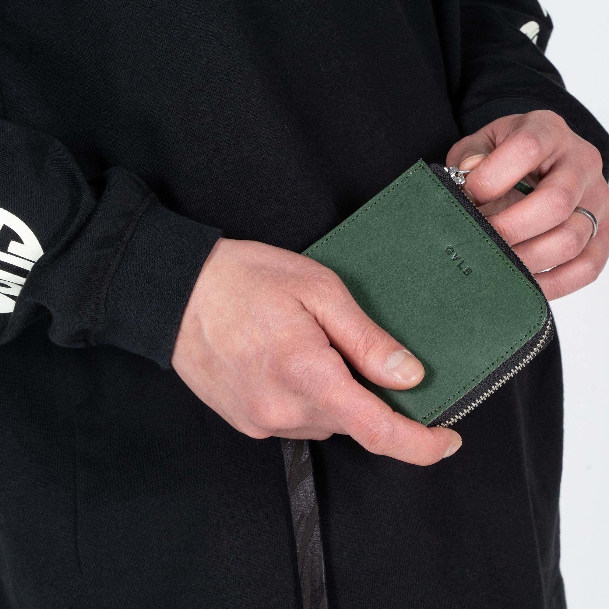 同じシリーズの長財布同様、フロント片面にはGVLSのロゴが型押し、ファスナー端にはDカンが付属されてウォレットチェーンとの接続も可能となっています。