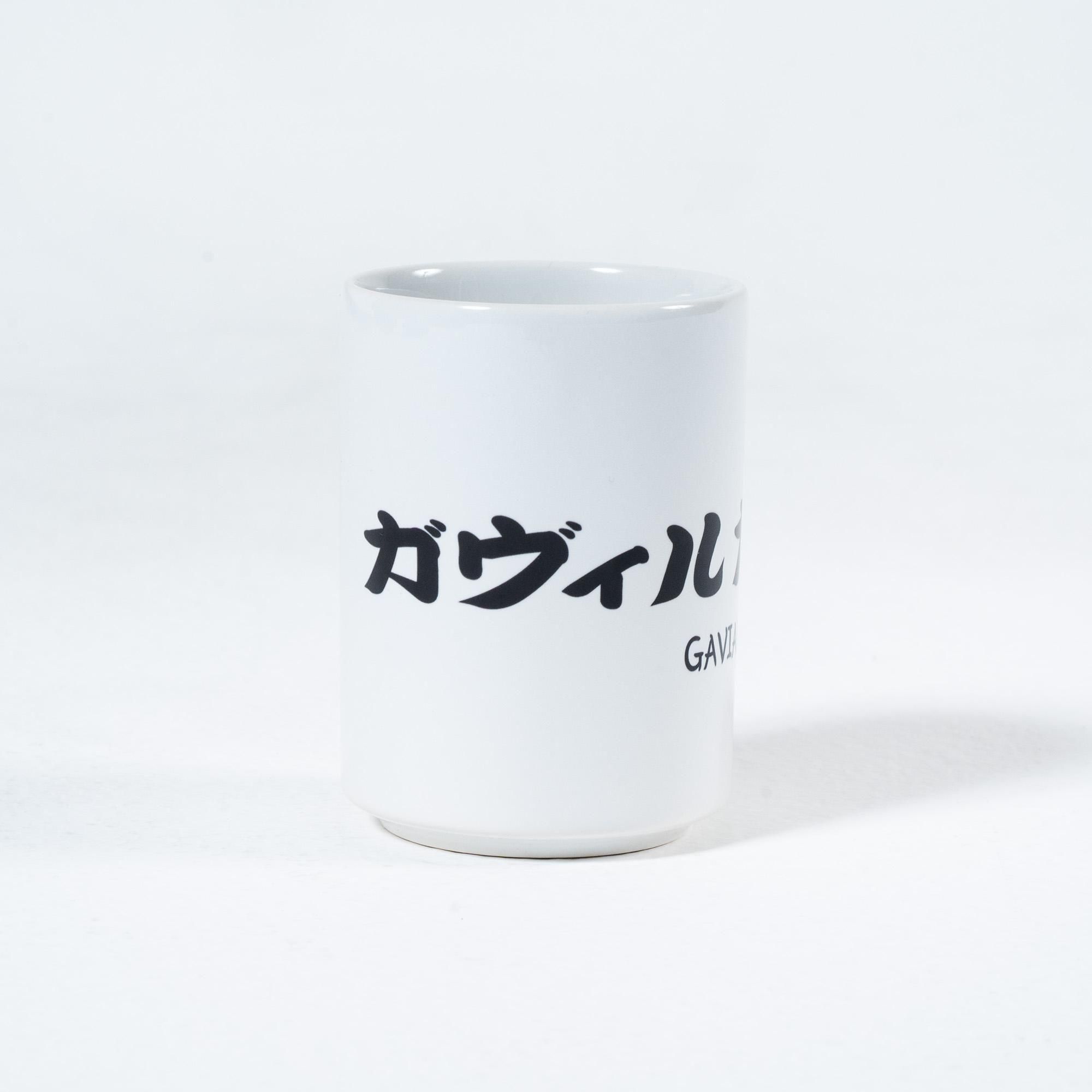 ベースがホワイトのシンプルな長湯呑み。容量は270mlの大人の手のひらにすっぽりおさまる大きさで、厚みもあり持った時の程よい重みのある いわゆる標準の湯呑み。